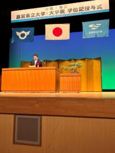 学位記授与式で卒業生、修了生に向けて、次のとおり湖風会の紹介と門出のお祝いを送りました。これからのご活躍を心より祈念いたします。